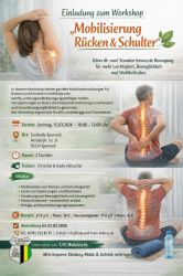 Wir laden herzlich ein zum Workshop "Mobilisierung Rücken & Schulter"! Gönn Dir zwei Stunden bewusste Bewegung für mehr Leichtigkeit, Beweglichkeit und Wohlbefinden!