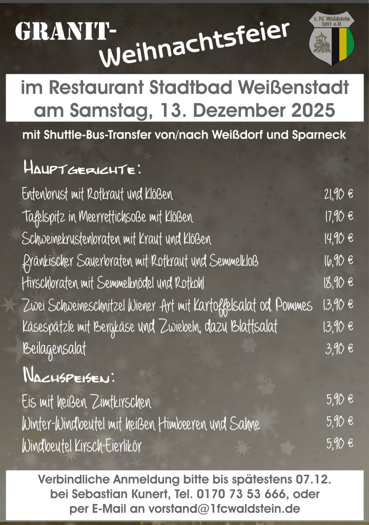 an Heilig Abend im GRANITwerk (Sportheim Weißdorf)!