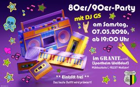 - auf eine Faschings-Party für die Erwachsenen verzichten wir heuer wieder... als Ersatz ist wie letztes Jahr die 80er/90er-Party am Start. Diese findet am Samstag, 07.03., statt. Für die musikalische Untermalung sorgt DJ GS!