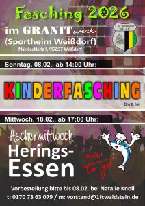 - am Sonntag, 08.02., findet von 14:00 bis ca. 17:00 Uhr wieder unser Kinderfasching für die kleinen Narren und Jecken statt.